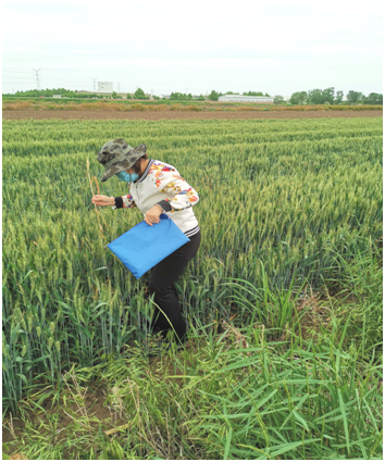 近些年,德州市小麦生产上病害发生较为频繁,如小麦锈病、白粉病、茎基腐病等。尤其是小麦茎基腐病,生产上由于缺乏抗病品种及适合的防控方法,该病在小麦整个生育期均会发生,并对小麦产量和品质造成一定影响。尤其是小麦生长后期,当包衣药剂不起作用时,小麦抽穗后病害可能还会蔓延危害。带着这个问题,我院挂职科技副镇长李艳梅博士于5月22-23日,5月29-30日四天时间对德州市2区5个县市小麦田进行了田间实地调查,其中包括所在挂职乡镇苏留庄镇。通过取地块取点调查,她发现各县市区小麦生产上茎基腐病在小麦生长后期均具有不同程度的发生,严重地块该病导致的小麦白穗呈现点片严重发生,对产量和品质造成较大影响。与当地农户交流 ,了解到该病害几年来都是这种情况,后期很难有办法控制。