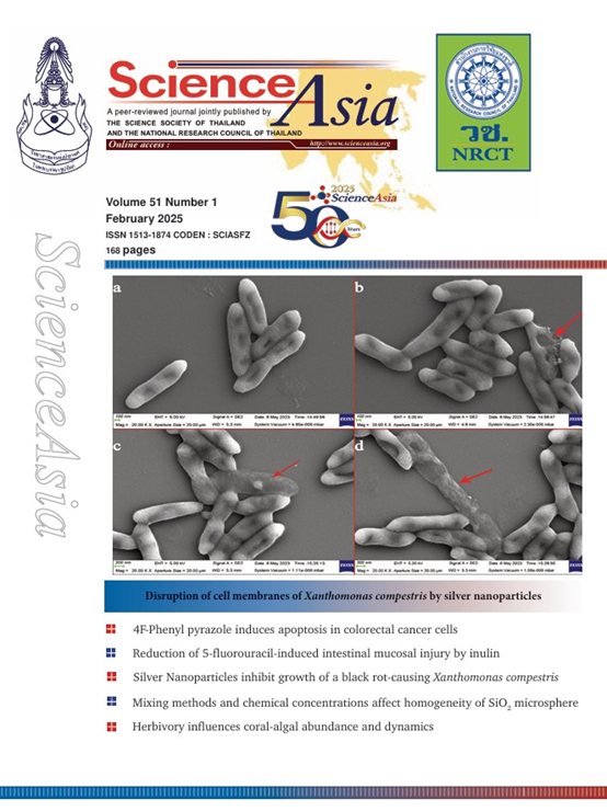 近日,国际SCI期刊ScienceAsia在其52卷第一期发表了题为 “Antibacterial activity of silver nanoparticles against Xanthomonas compestris var. compestris”的研究论文,该论文结果被选为本期论文的封面图片。